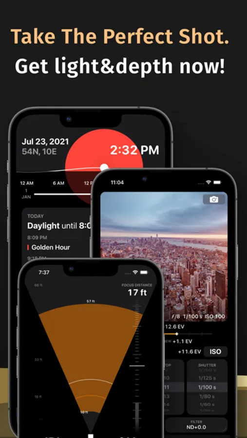 light&depth combines the best depth of field calculator with a fully-featured sun calculator, a light meter, exposure calculator and helpers for every situation. It gives you all the tools you need to supercharge your photography.