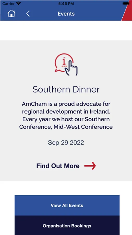 Events: AmCham runs over 100 events a year - from large scale conferences to intimate leadership Forums. Through the app you will be able to book as well as receive relevant event information and reading material.