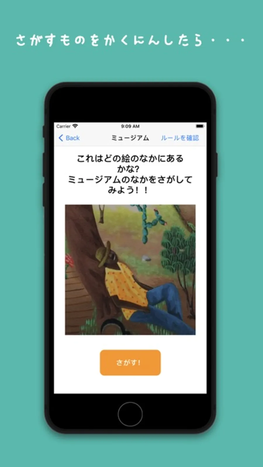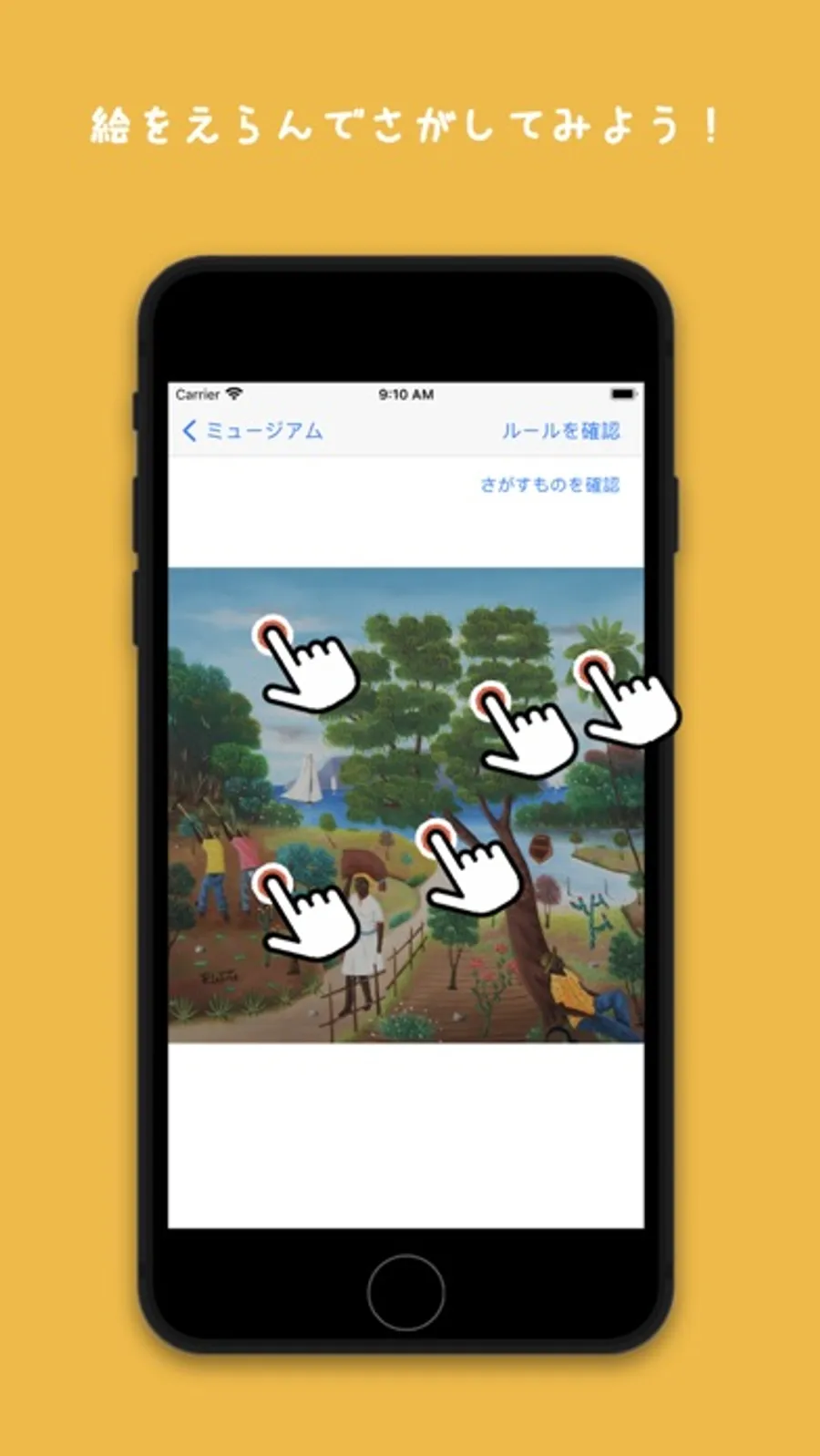 芸術作品の一部を探して遊ぶことで、観察力や、作品を多様な視点(主題・材料・色・形・線・雰囲気等)から見る習慣を養い、スマホで美術手展を楽しむことができます。