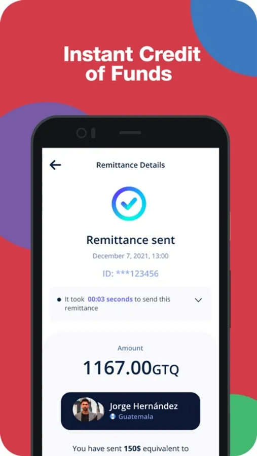 We understand the funds are needed fast. Remittances are creedited at top speed, in seconds.. "Time is Money"