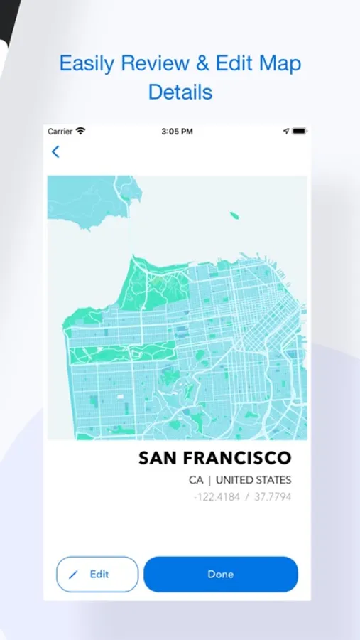 Streetly makes it easy to highlight your favorites places. Design a custom map design of any location or landmark all within the app.
