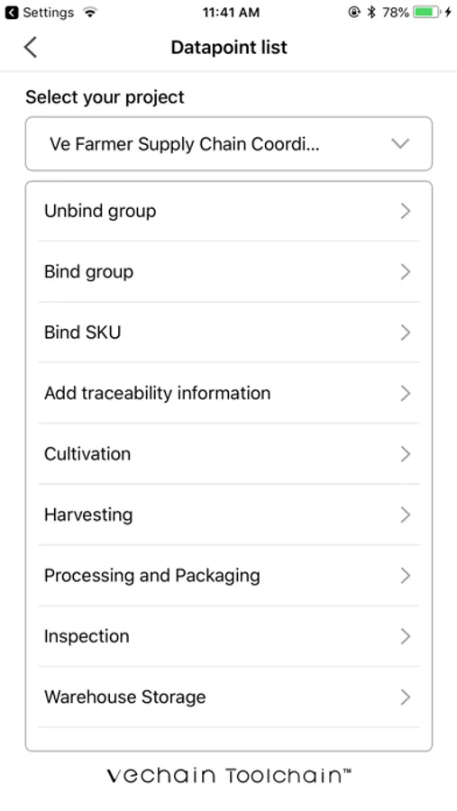 ToolChain Work is a mobile application on VeChain ToolChainTM platform for users. The chip or QR code purchased on the VeChain ToolChainTM platform is the only code recorded on the VeChain blockchain. The chips are used for anti-counterfeiting.