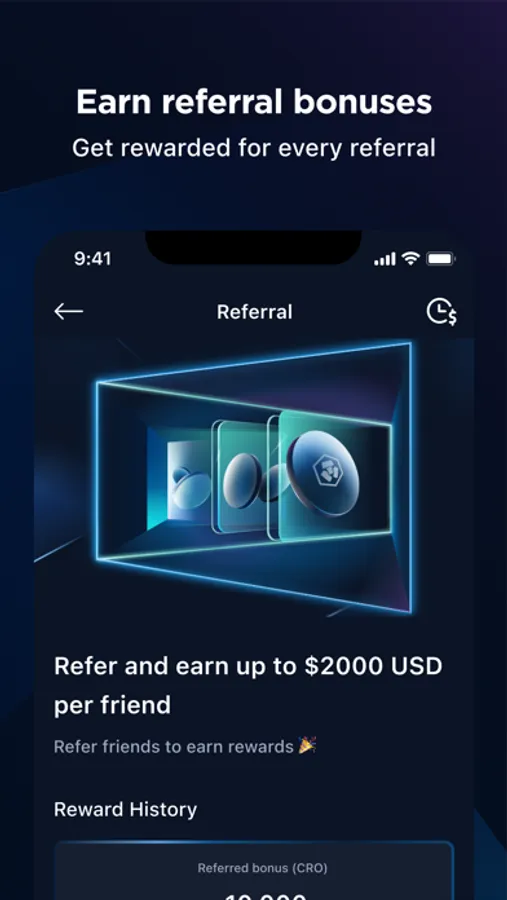 - Get up to USD 2,000 in CRO for every friend you refer to the Crypto.com Exchange, and a 50% commission on their trading fees for a year