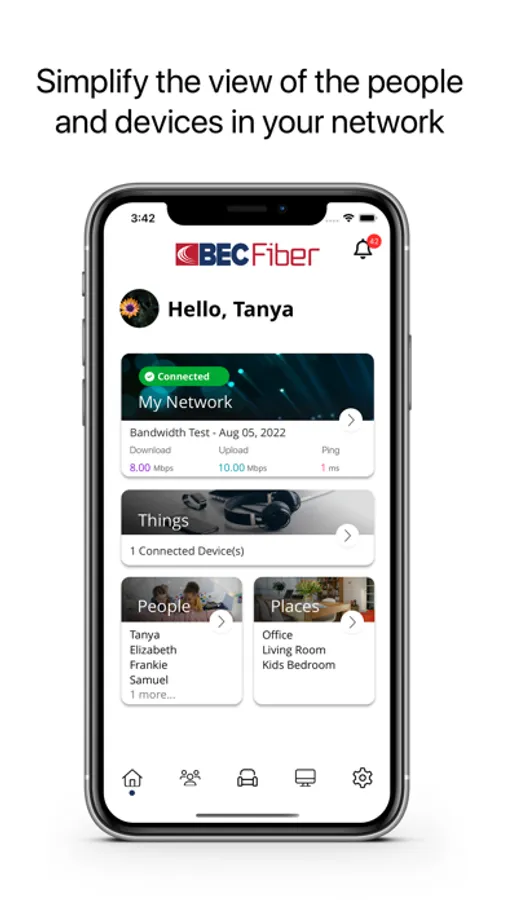 myBECfiber is a user-friendly smart home Wi-Fi application by Bandera Electric Cooperative. Monitor and control your network with parental controls, creating guest networks and implementing network security. You can view all connected devices, view network suage, set device priorities and test your speed.