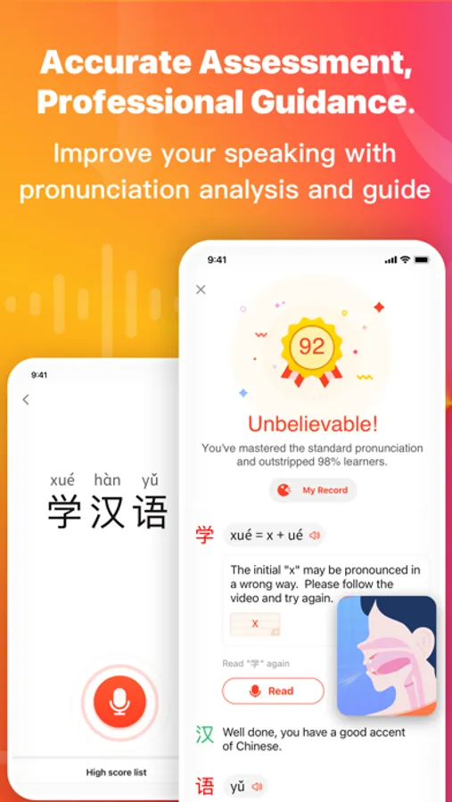 ● Practice and check Chinese pinyin pronunciation by world's best Chinese voice assessment technology from China