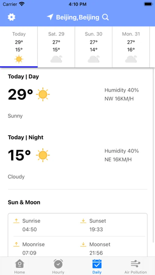Provide clothing, car washing, UV, flu, sports, tourism and other life index, is your daily life, travel indispensable weather forecast app!