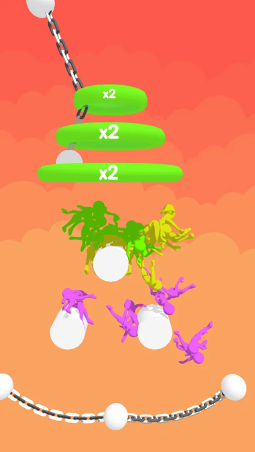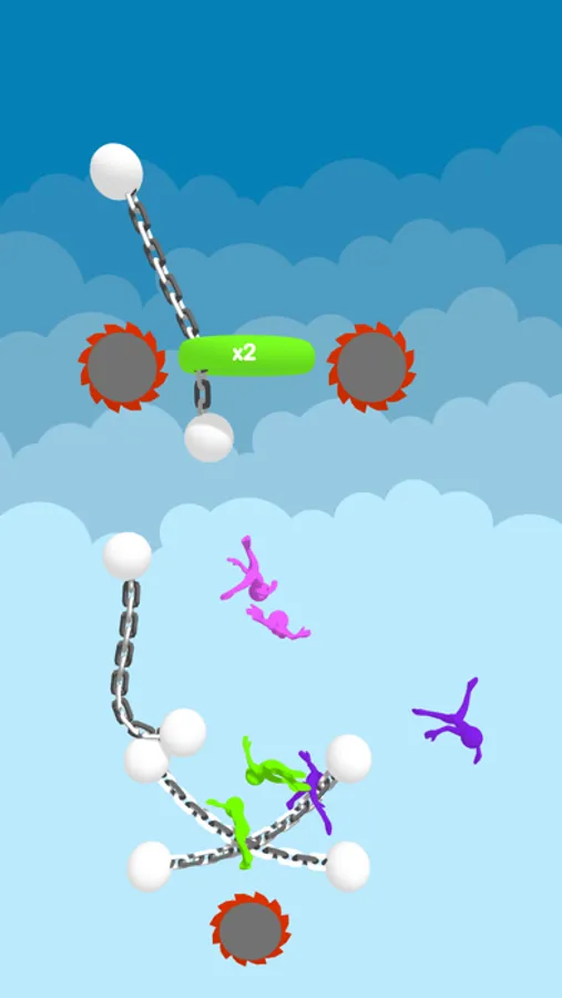 Take the chains and move them to make guy falling at the right place. Avoid the saw and duplicate your army to reach the end of all levels. Easy to learn, hard to master!