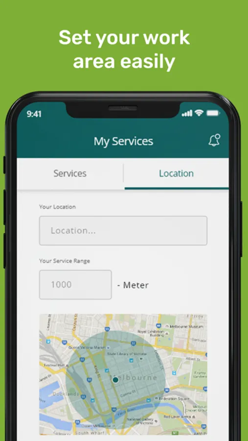 • Select your preferred work area. You can select a location in the app and set a desired area in which you wish to work