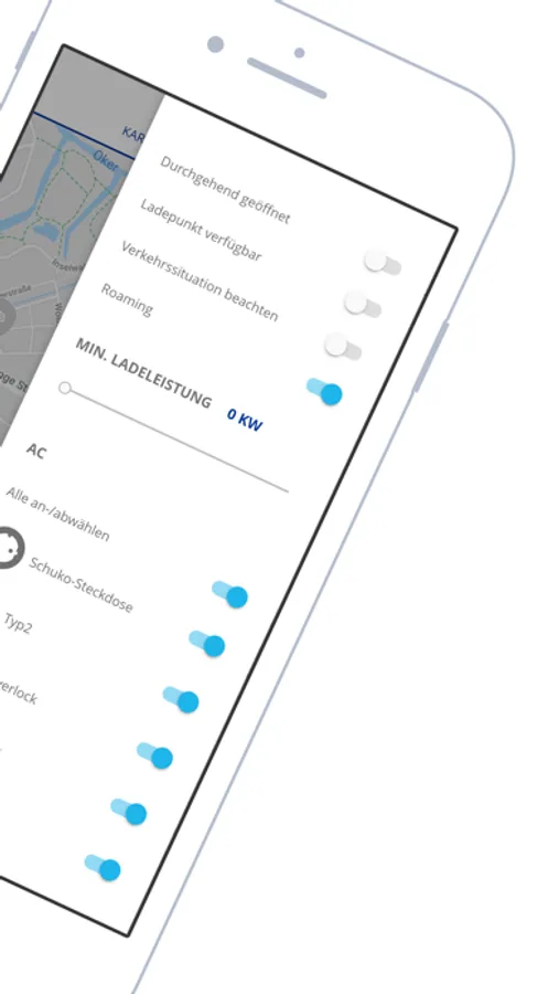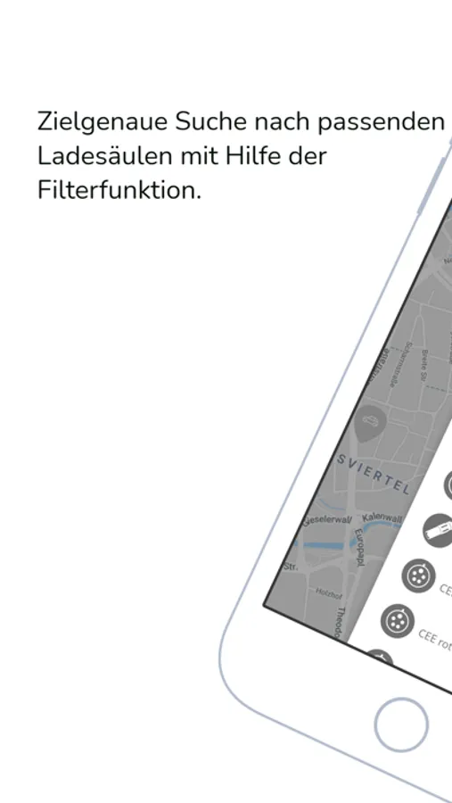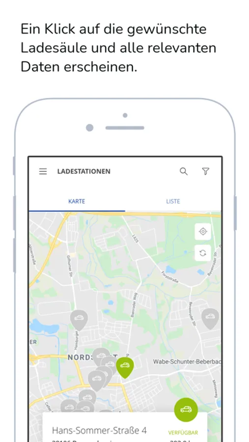 live-Anzeige aller Ladestationen in der Nähe, Filterfunktion und direkter Navigation