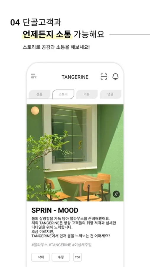 재구매율이 증가 할 수 있게 상품등록, 스토리 등록으로 내 단골손님에 마음을 끌어 보세요.