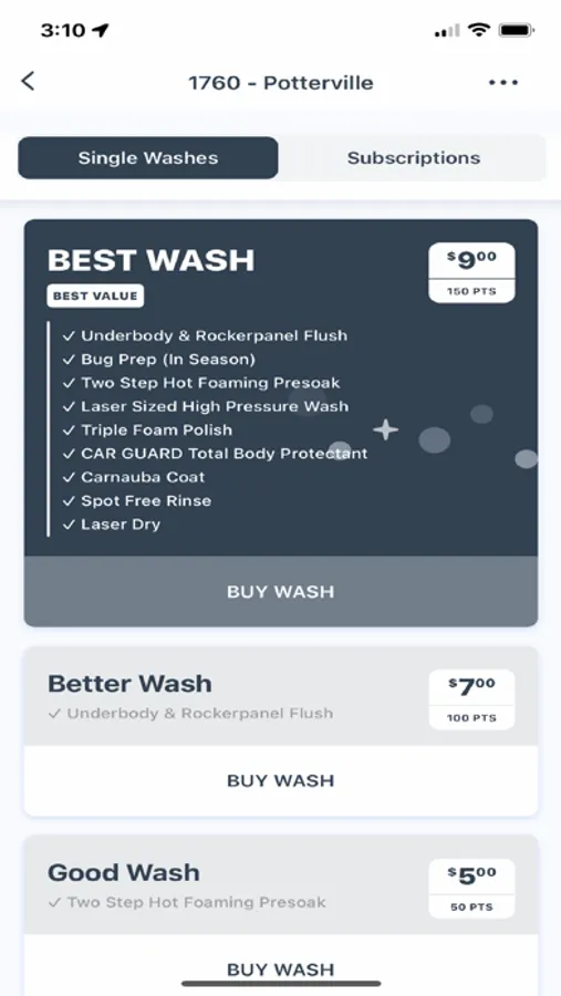 The Johnny's Markets Car Wash app is a fast and convenient way to find your nearest Johnny's Markets Car Wash location and purchase a car wash right from your phone! Loyalty points are built right in, so you start earning points for free washes with every purchase. Check out https://johnnysmarkets.com/ for more information.