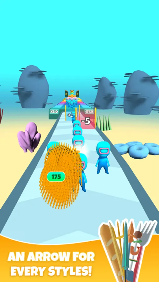 It is time to control your arrows, pick the best gates, and destroy everyone on your way! Collect lots of coins and upgrade your arrows and income!