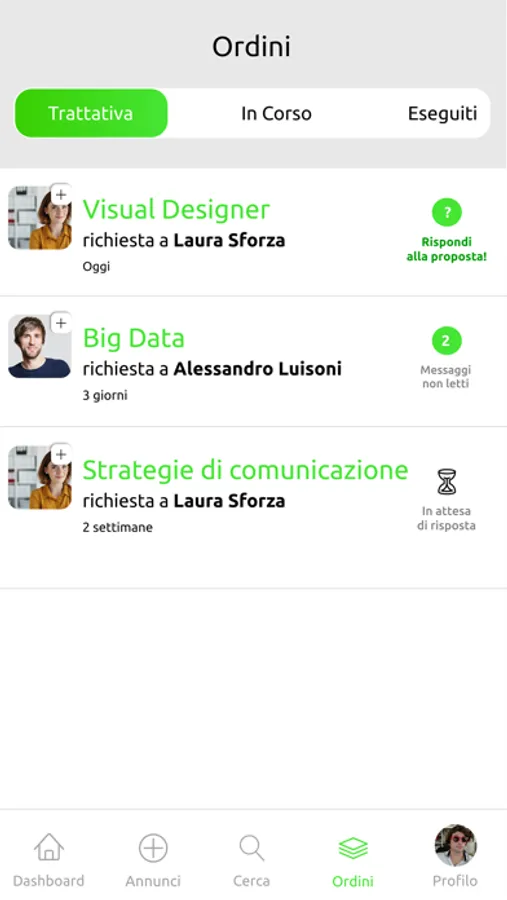 Fornisci tutte le informazioni ai talenti che hai scelto, approfondisci dai una scadenza e quando sei soddisfatto richiedi un offerta.