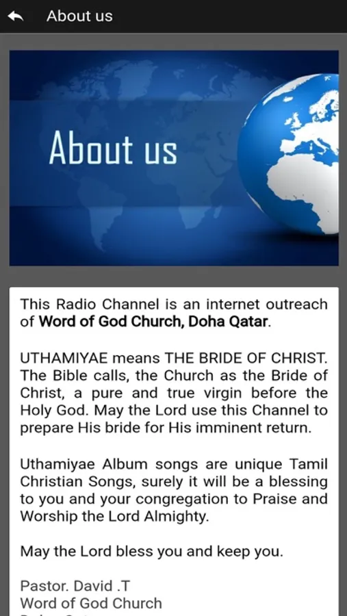 UTHAMIYAE means THE BRIDE OF CHRIST. The Bible calls, the Church as the Bride of Christ, a pure and true virgin before the Holy God. May the Lord use this Channel to prepare His bride for His imminent return.