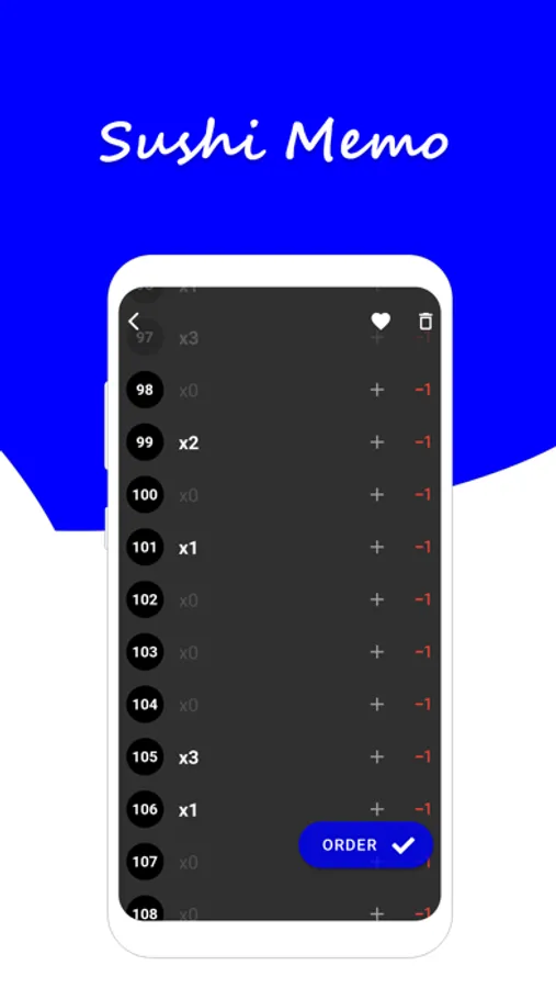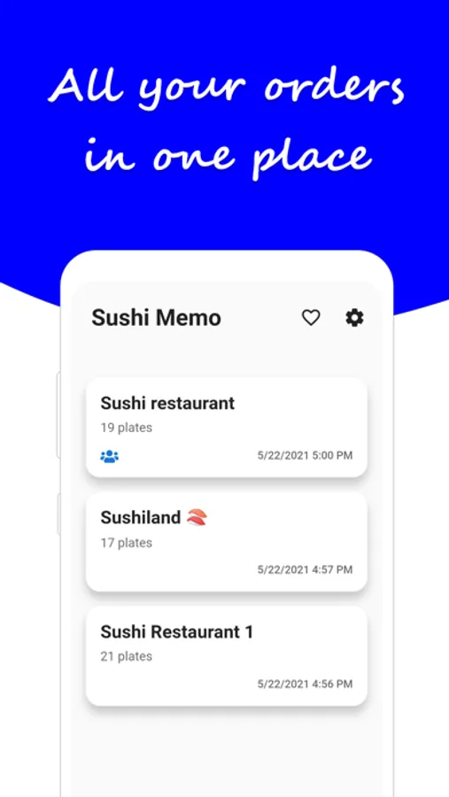 Sushi memo will save the executed orders, every time you go to an already visited sushi restaurant, you can order again and review your orders.