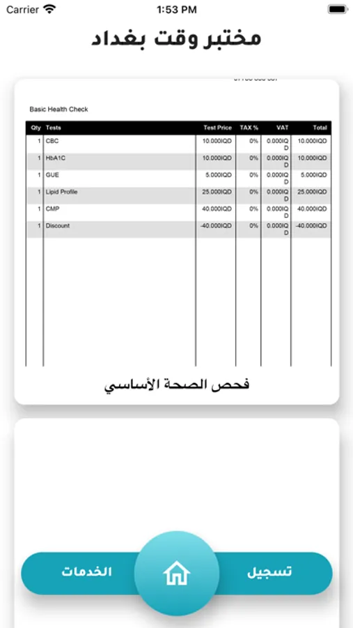 تطبيق فحوصات مختبرية