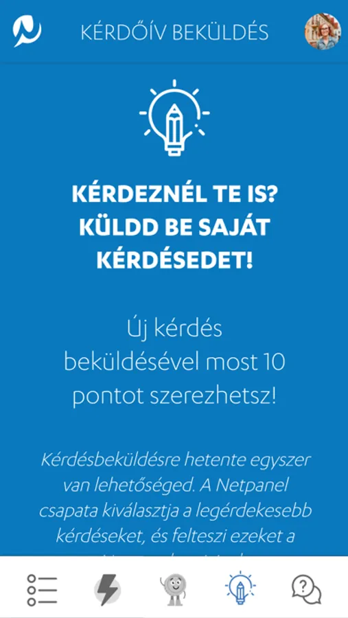 A Netpanel App-ban eléred az éppen kitölthető kérdőíveket, követni tudod a pontjaid számának alakulását, és benevezhetsz a rendszeres nyereménysorsolásokra is.
