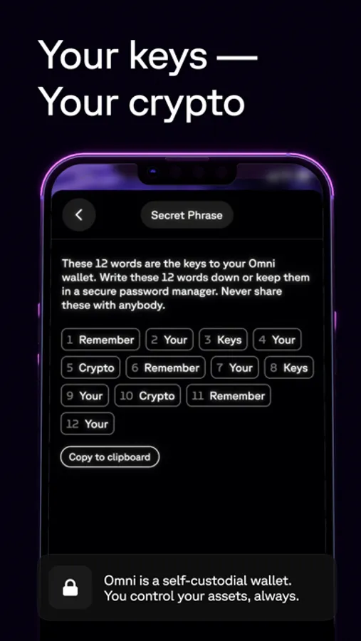 - Your Keys, Your Crypto: You are in full control of your wallet and your crypto.