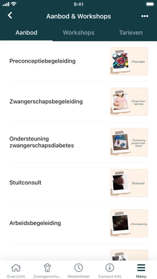 - Workshops: schrijf je in voor tal van onze workshops waarbij we (toekomstige) ouders vele tips en tricks bijbrengen. Via enkele kliks ben je ingeschreven via de app.