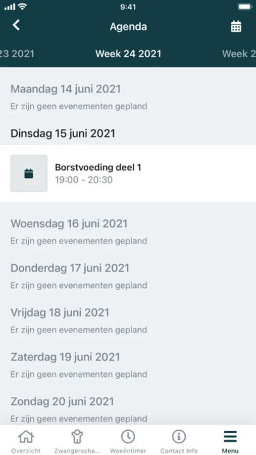 - Zwangerschapskalender: na het ingeven van je uitgerekende verlosdatum krijg je een mooi overzicht van de ontwikkeling van de baby.