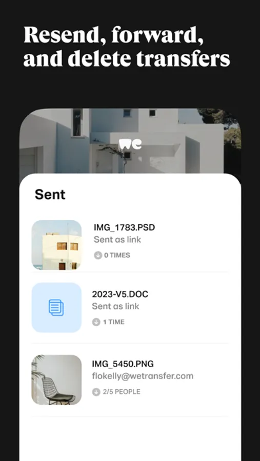 WeTransfer is the simplest way to send (and receive) big files. Whether you’re at your desk or on the go, transfer up to 200 GB in one go. That’s about 2000 videos of your cat. With WeTransfer, you can check the download status, forward, and delete transfers right from your phone. Get notified the minute you receive something and preview (or download) your files wherever you are.