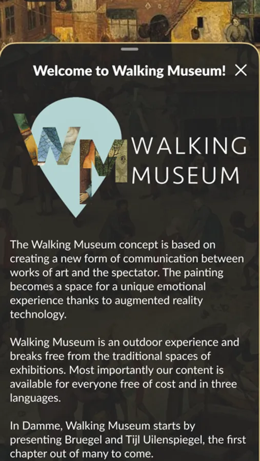 Walking Museum has created a modern IT tool that will allow you to discover the paintings in an exciting new way. The depicted characters will come to life, by means of AR, telling the story of Tijl Uilenspiegel.