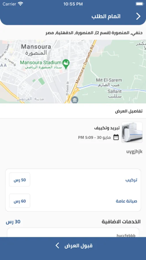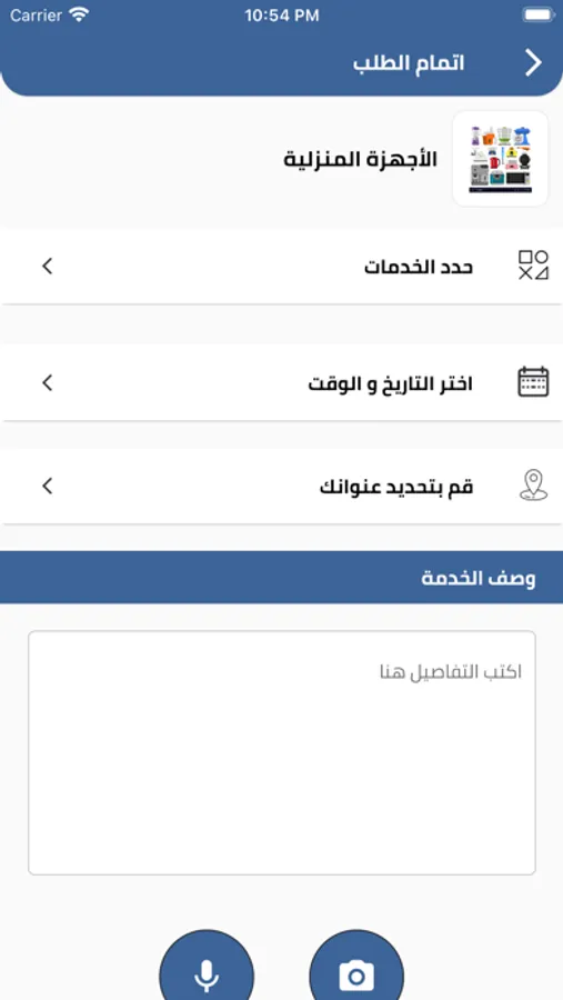 An application at your service is a distinctive application that allows you to obtain high-quality home maintenance services. In addition to more other services such as (cooling and air conditioning - paints - furniture and carpentry - plumbing - electricity - cleaning - swimming pools - sterilization - kitchens - umbrellas and parking - water - contracting - electric elevators - nurseries - landscaping - phones - moving furniture - Eve - Thermal Insulators - Interior Designs and Gypsum Works - Home Appliances) and the application provides the authorized service provider that corresponds to the details of your request