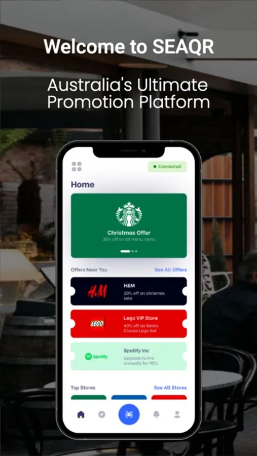 SEAQR offers businesses and consumers access to a major network which grows with every new signup. Unlike social media platforms that enable individuals to promote their products and services to an online audience, SEAQR uses its app to directly connect small to medium sized businesses to a vast customer base. This is achieved through business’ ability to send users a selection of discounts, promotions, and in-store specials, which can be redeemed upon scanning or tapping their mobile device on our conveniently placed hubs.