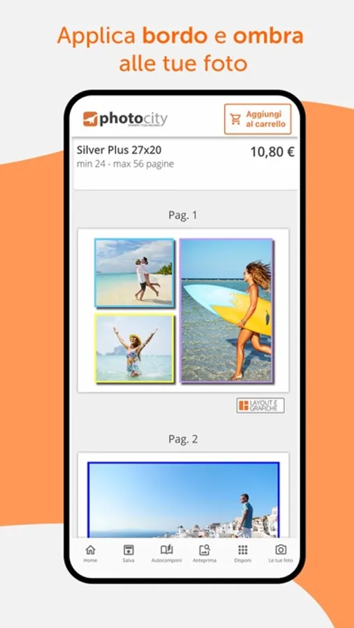 Crea la tua composizione, con layout multifoto, tanti temi e grafiche per personalizzare il ricordo perfetto!