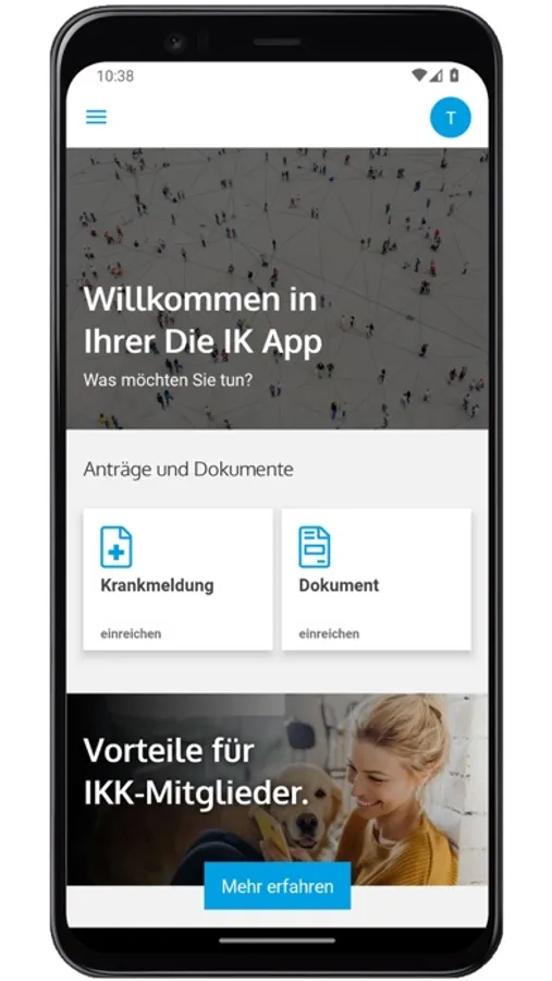 • Services wie Lichtbild-Upload, Arzt-Suche, Apotheken-Suche usw. erreichen