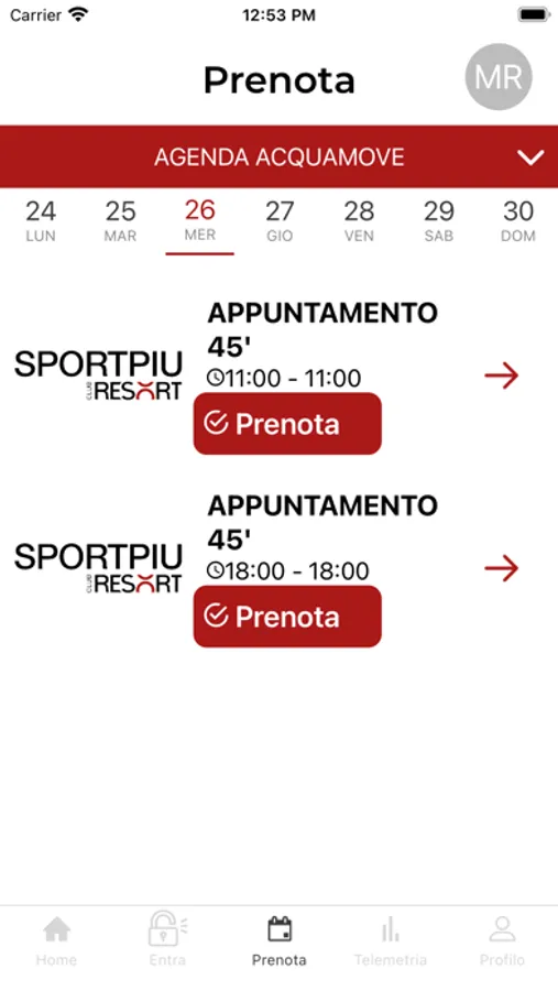 Con la app SportPiù Resort puoi riservare online i tuoi allenamenti. In maniera facile ed intuitiva, avrai a disposizione un'agenda completa dove poter prenotare il tuo appuntamento all'interno di Members Default, all'orario che preferisci.