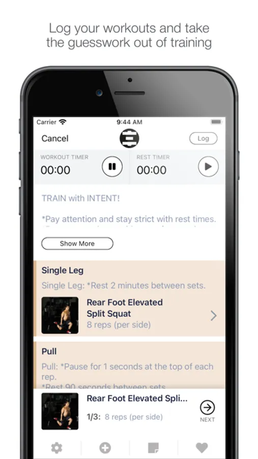 Log your workouts from anywhere with the Intent Athletics workout app! View your logged workouts, see upcoming scheduled workouts, and book appointments inside the app. Track your progress and get the most out of your workouts!