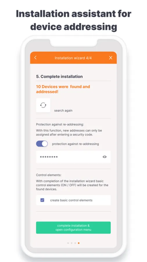 The application offers an installation assistant with function test and addressing capability to set up the DALI System.