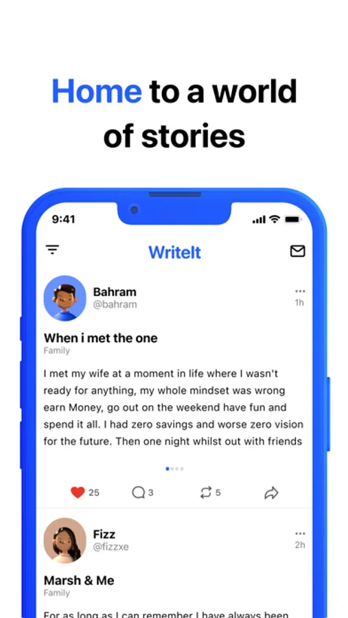 WriteIt is a unique social media app that lets you share your personal stories with the world and connect on a deeper level.