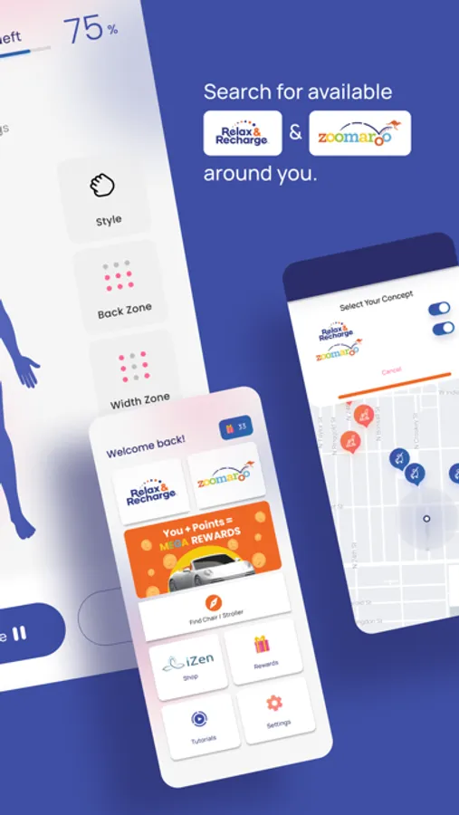 The more your family enjoys Relax & Recharge Massage Chairs and Zoomaroo Strollers, along with in home iZen massage products – the more points you earn to redeem FREE services and products across the Innovative platform. Download the App, join the Rewards Program to start earning points today!