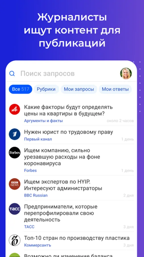 – Публикация журналистских запросов, которые доступны тысячам экспертам – специалистам и руководителям из разных отраслей.