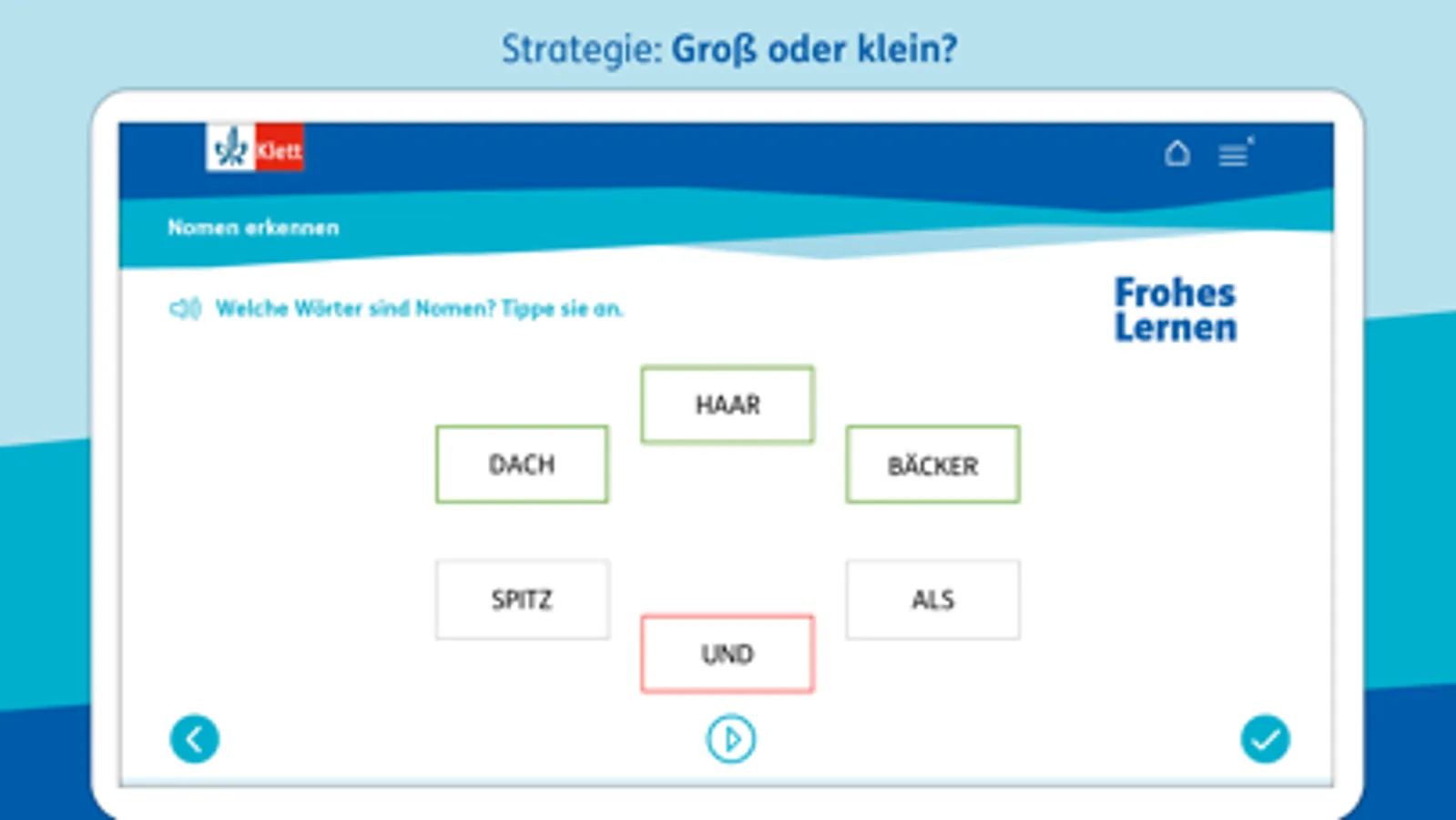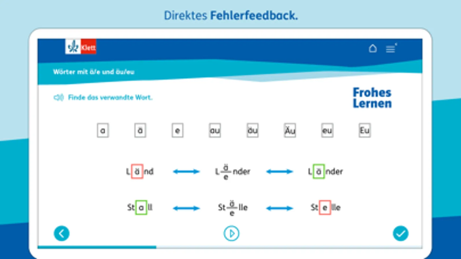 Mit der Frohes Lernen App werden passend zum Lehrplan die Inhalte des Deutsch-Unterrichts von Klasse 1 bis 4 selbstständig geübt. Die Lern-App kann über die gesamte Grundschulzeit genutzt werden, auch offline.