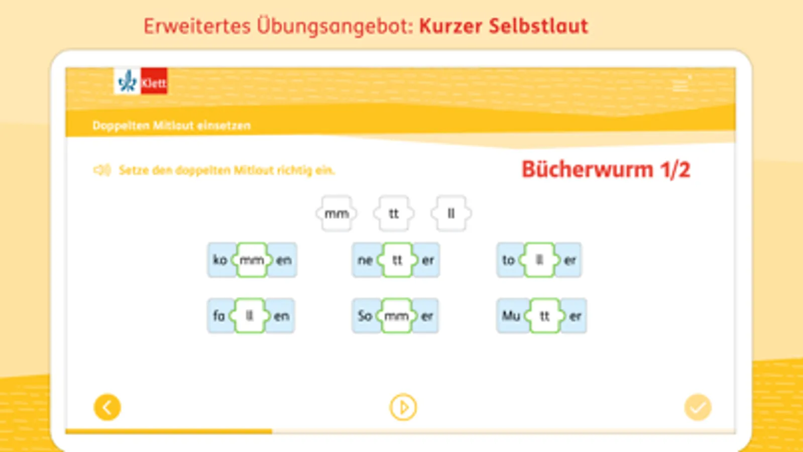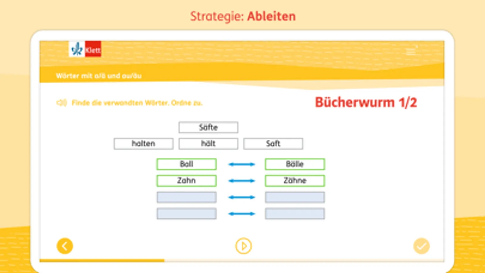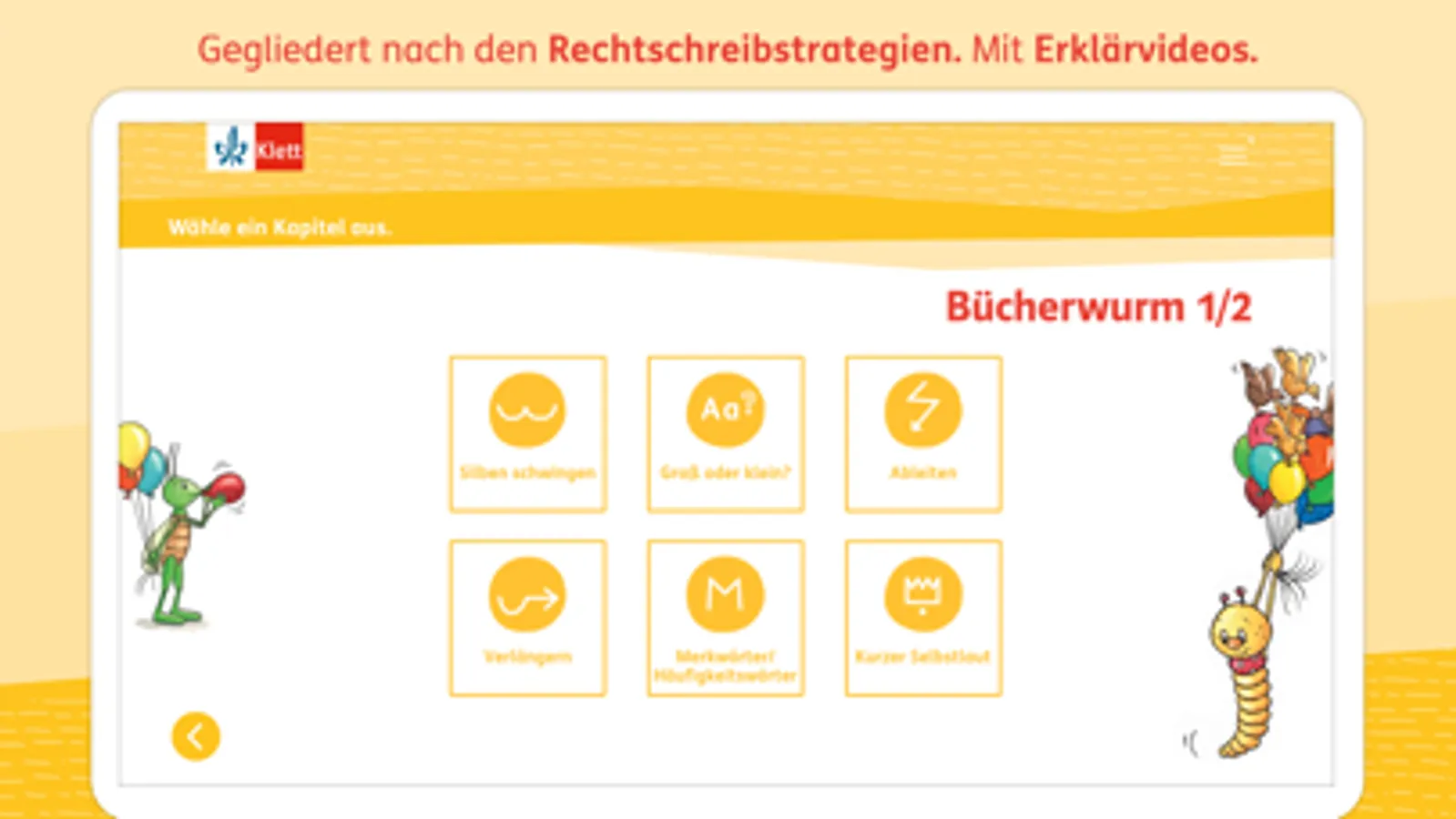 – Die sechs Rechtschreibstrategien des beliebten Bücherwurm Lehrwerks werden in je über 300 interaktiven Übungen pro Schuljahr trainiert.