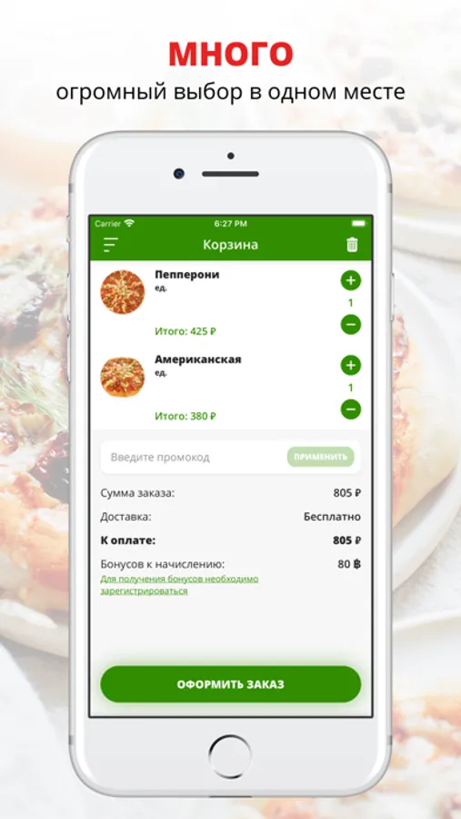 Используйте наше приложение для быстрого и удобного заказа еды, где бы Вы ни находились!