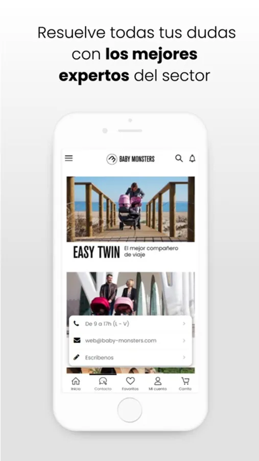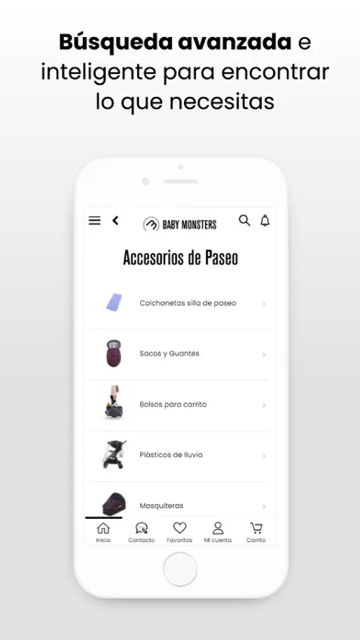 Sillas de paseo, carros gemelares, accesorios para los cochecitos, sillas de auto, productos para la casa y alimentación, además de la sección outlet.