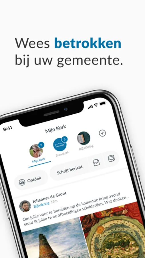 Dankzij onze unieke groepenstructuur helpen wij kerken beter te communiceren. Met de hele gemeenschap, maar ook onderling. U kunt zelf groepen toevoegen en mensen daarvoor uitnodigen. Een slimme timeline zorgt er voor dat iedere gebruiker persoonlijke en relevante informatie ziet.