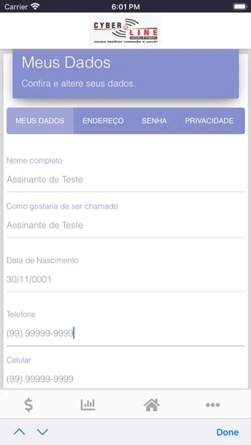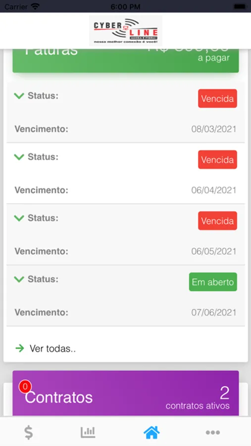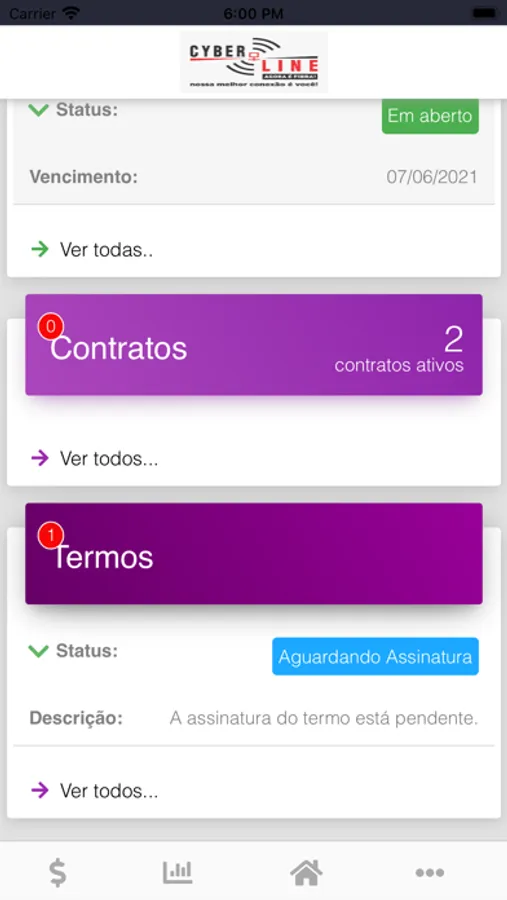 Um aplicativo para você, cliente CYBERLINE consultar suas faturas, assinar seu contrato e desbloquear seu acesso a um clique