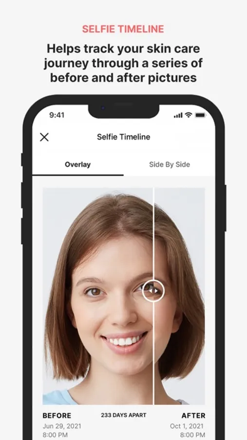 • Selfie Timeline—Helps track your skin care journey through a series of before and after pictures.