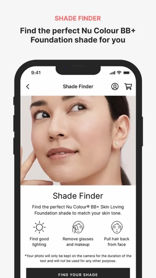• Shade Finder—Helps find a Nu Colour BB+ Foundation shade to match skin tone using virtual try-on AI technology.