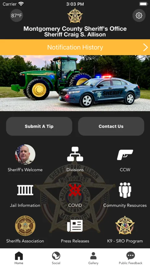 Welcome to the official mobile application for the Montgomery County Sheriff’s Office, Missouri. Sheriff Craig S. Allison feels we must embrace technology in order to expand upon the level of trust between the Sheriff’s Office and the people that we serve. The MOCO Sheriff’s App is an interactive application developed to help improve communication with the citizens and visitors of Montgomery County. The MOCO Sheriff’s App allows the residence to connect with the Sheriff’s Office by reporting crimes, submitting tips, and other interactive features such as:
