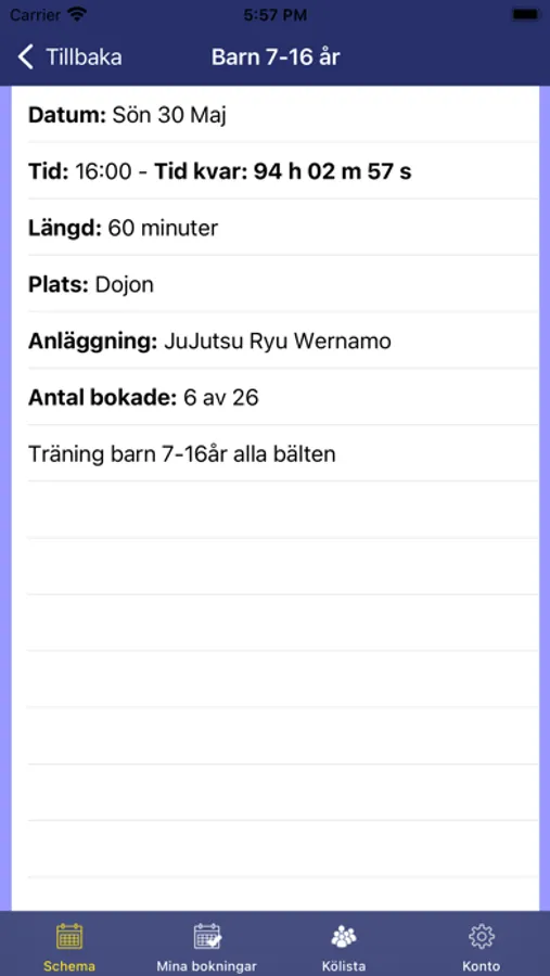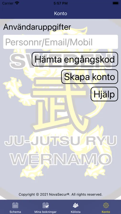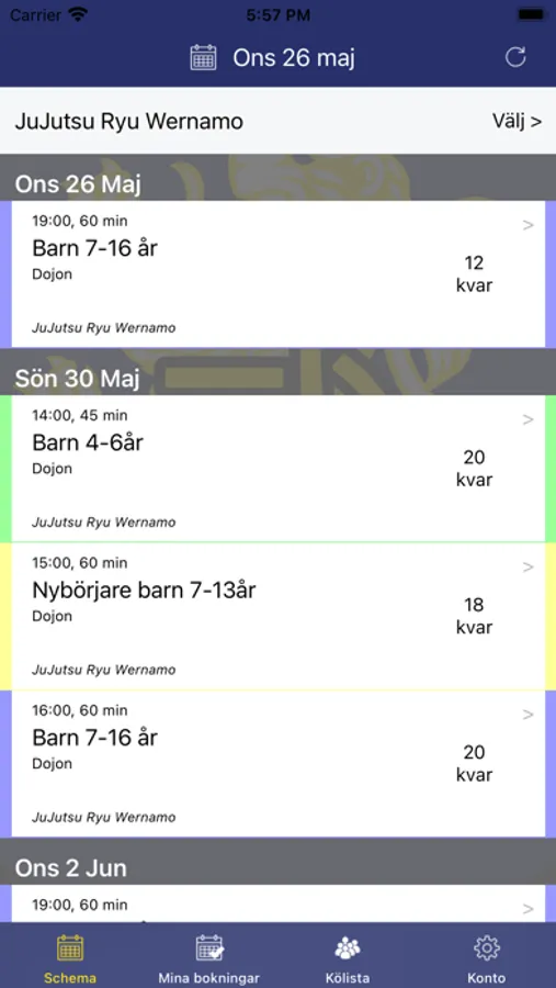 Detta är bokningsappen för Ju-Jutsu Ryu Wernamo.
