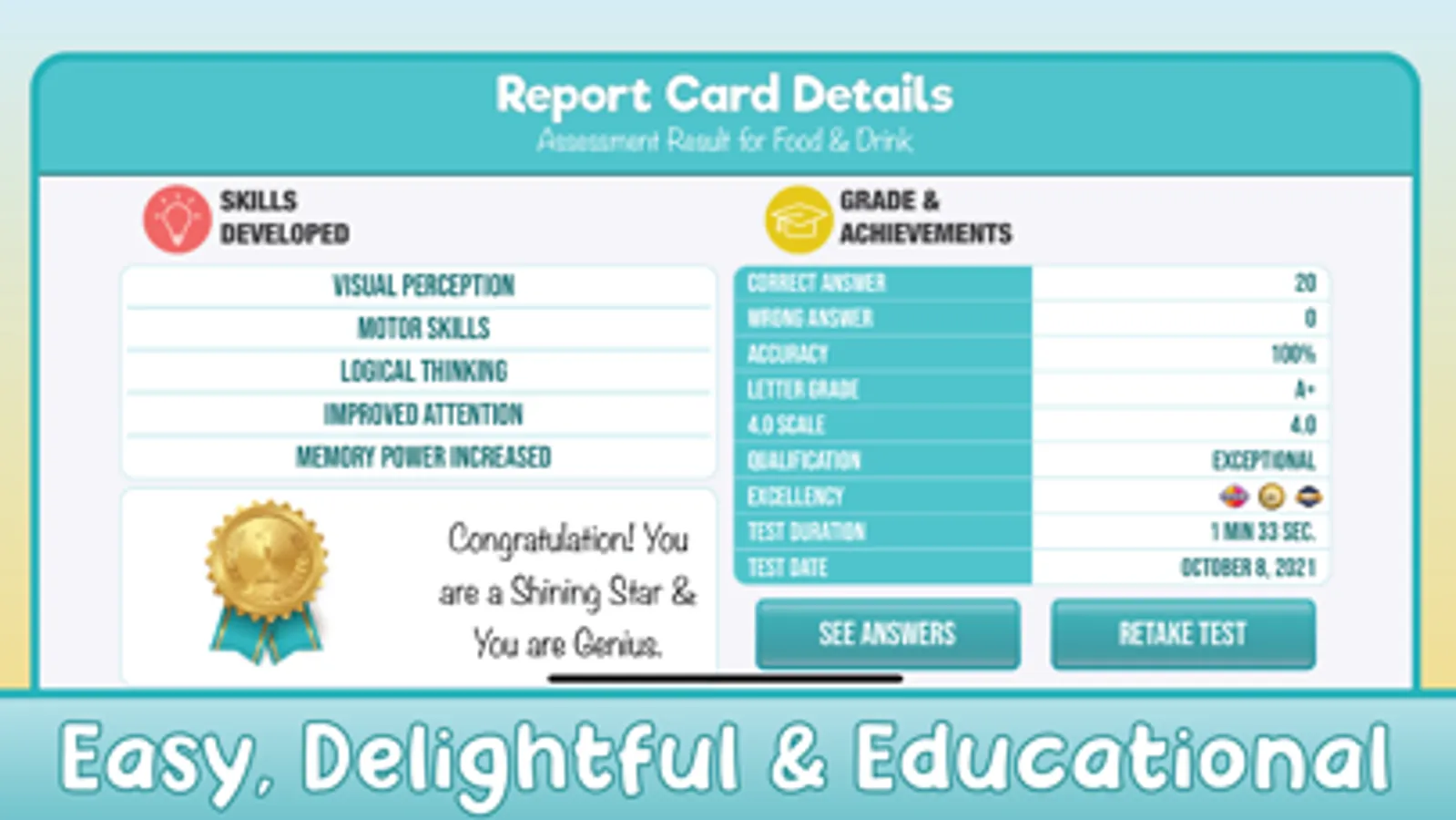 - Report Card for kids with Scoring, Grade, Accuracy & Badges.