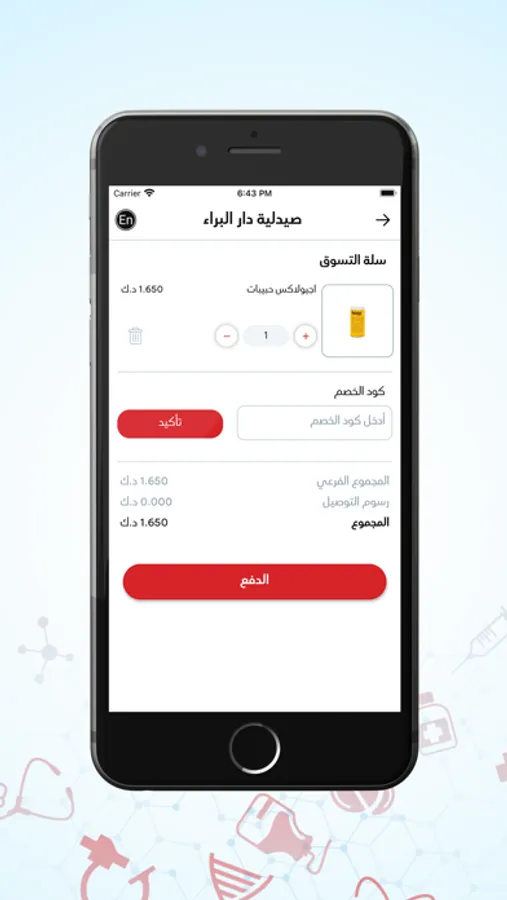 تطبيق صيدلية دار البراء هو أفضل مكان لشراء الأدوية التي تبحث عنها وتوصيلها إلى باب منزلك. وفضلًا لواجهة استخدامه السهلة عملية الطلب بسيطة للغاية، ادخل إلى التطبيق ثم اختر التصنيف المطلوب وابحث عما تريده فيه، بعدها أضف المنتجات إلى عربة تسوقك ثم اختر آلية الحصول على الطلب ووسيلة الدفع وادخل باقي المعلومات المطلوبة.