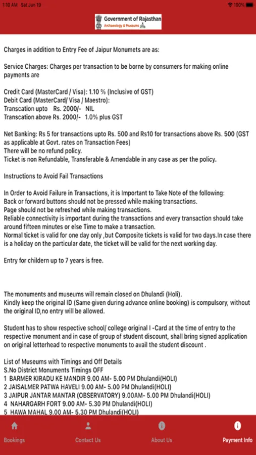 App provide the facility to book entry tickets for monuments & Museums which are under control of department of archaeology and museum like Amber Fort, Jantar-Manatr, Albert Hall etc.