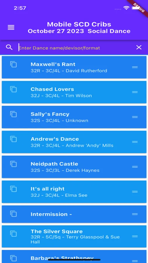 Search for dances and create lists for Scottish Country socials/balls and classes. Dances are those provided from the Scottish Country Dance Database (SCDDB)